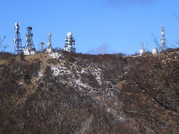 山頂部にアンテナがたくさん設置されている地蔵岳