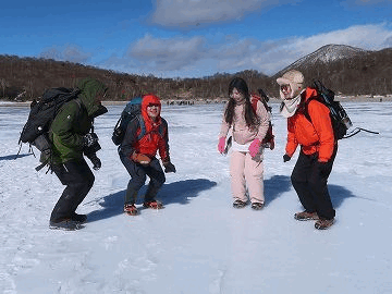 小沼で氷上歩きを楽しむことにしました。