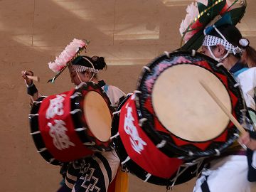 屋内で見るさんさ踊りは初めてです