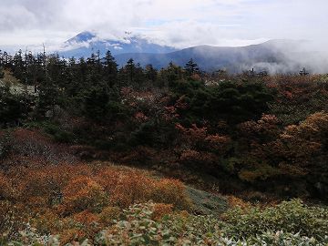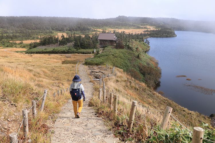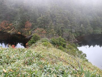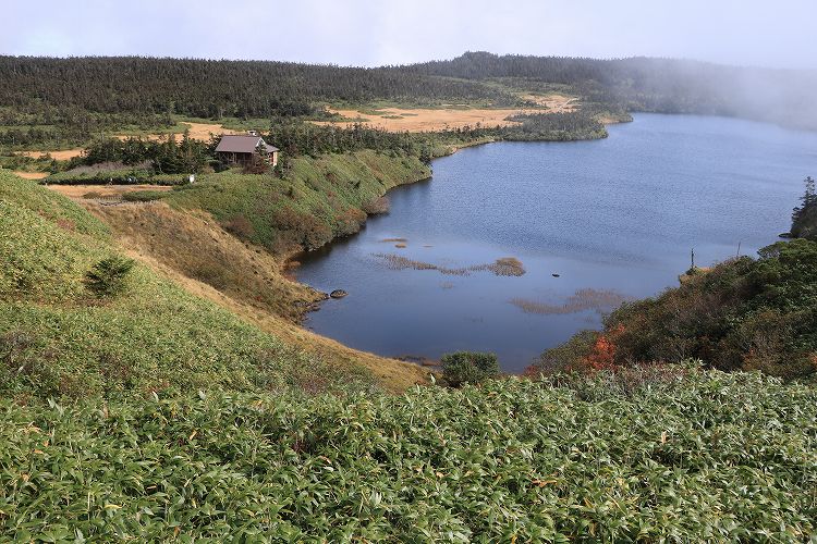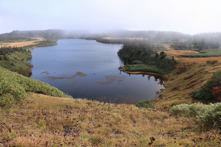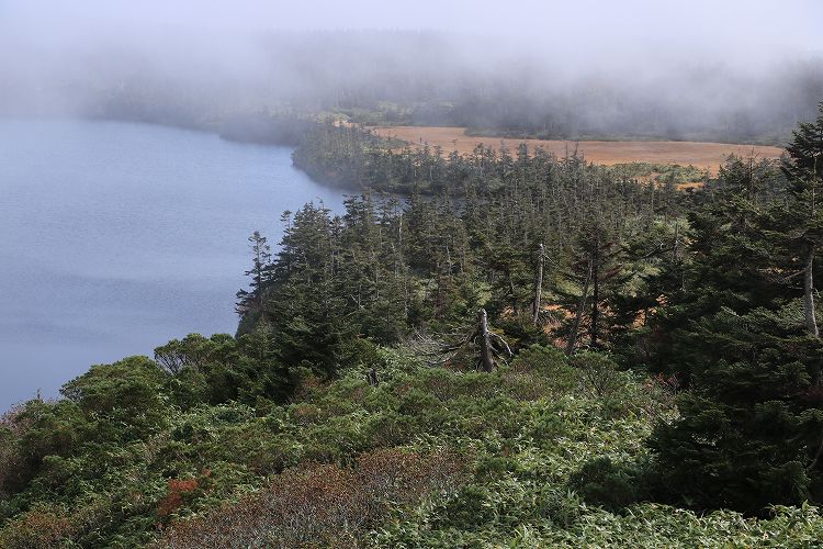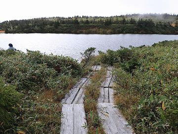 少しガスが掛かってますが八幡沼も見えますね