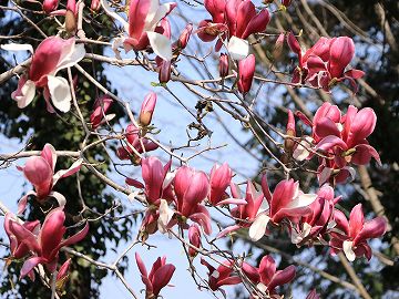 紅白のコントラストが美しい赤モクレン