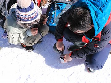 新しい靴で初雪歩きのお姉さんのテスト歩行を兼ねて登りました。