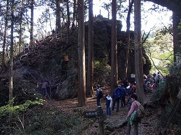 天狗岩。鎖場を登ると祠があるらしい (11:55)