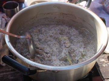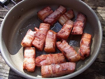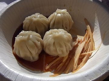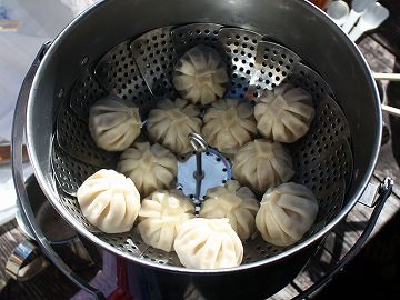 肉団子の生姜鍋、小籠包、ベーコン炒めなどでビールが進む進む…。