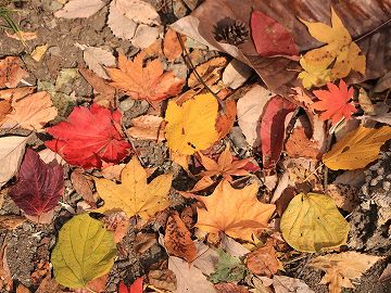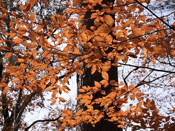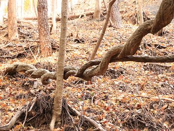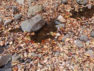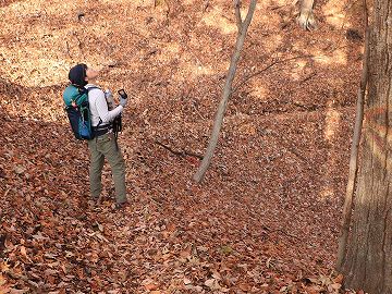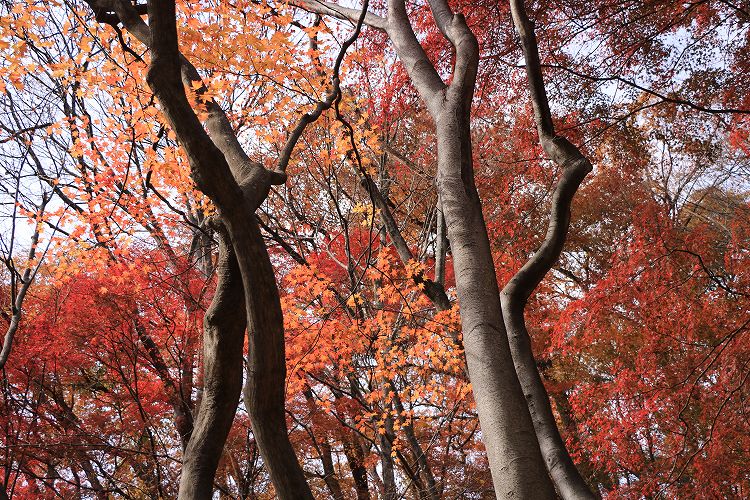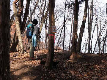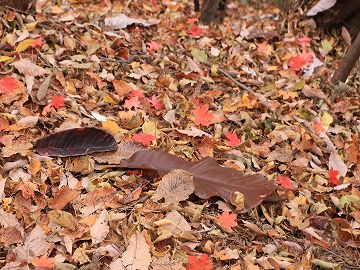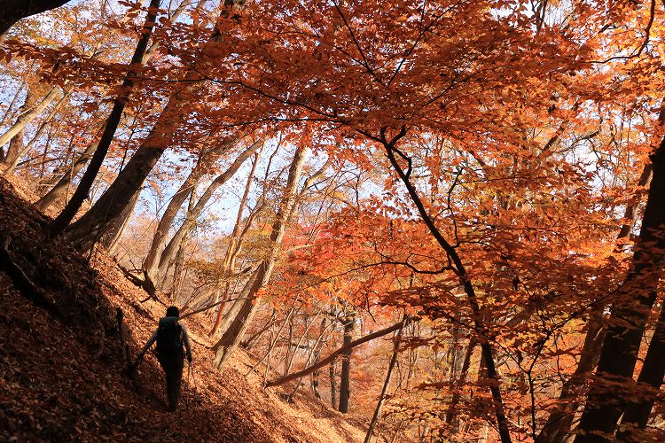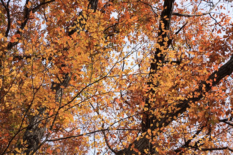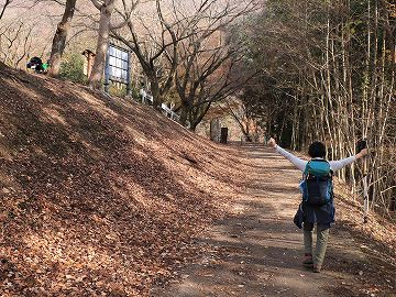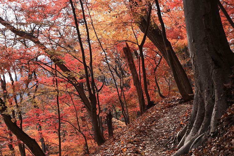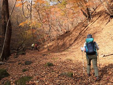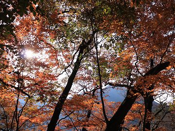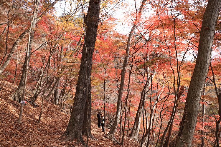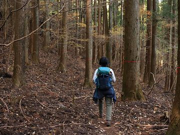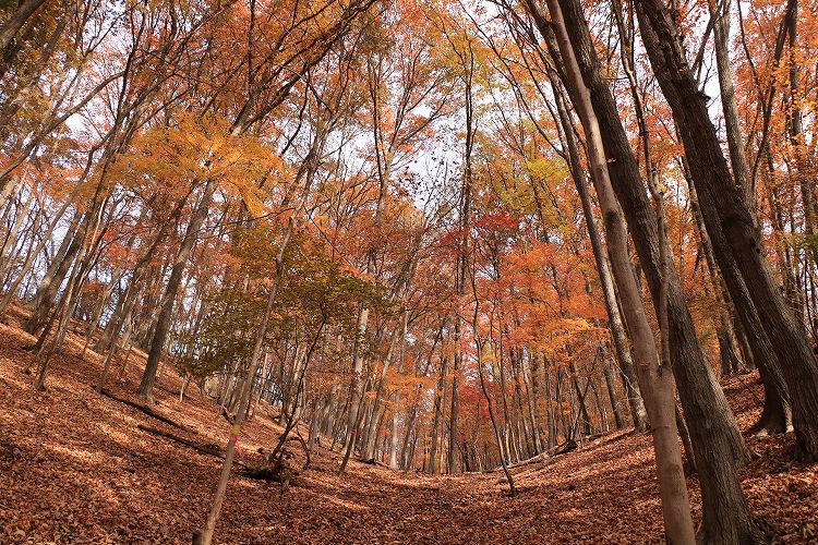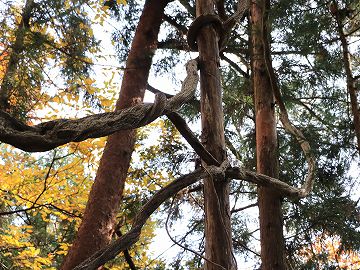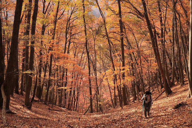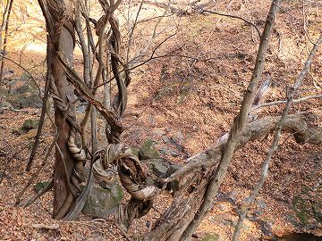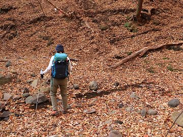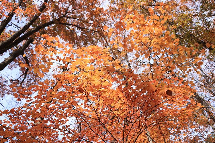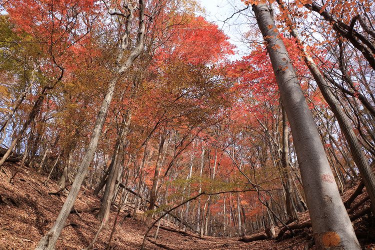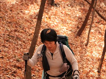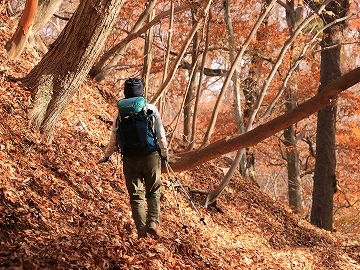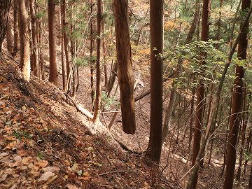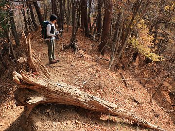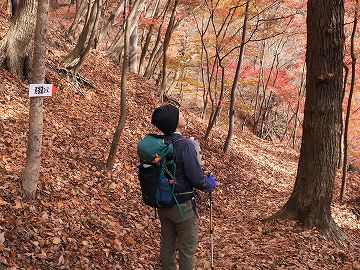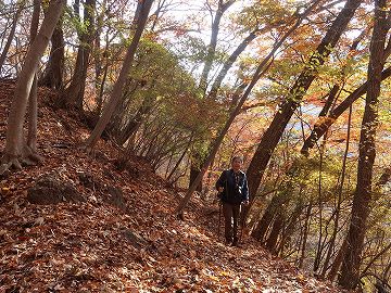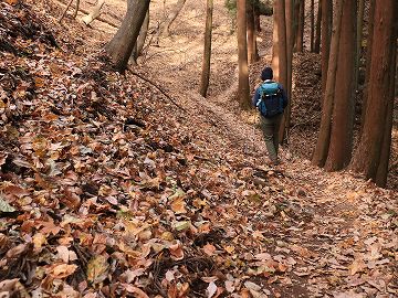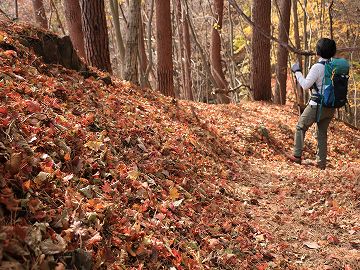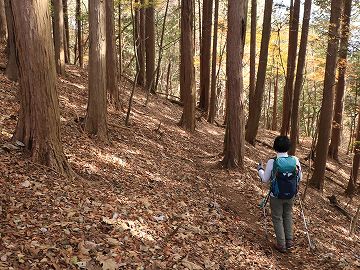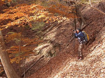 落ち葉でどこが道か分かりにくい。上を見ると・・・