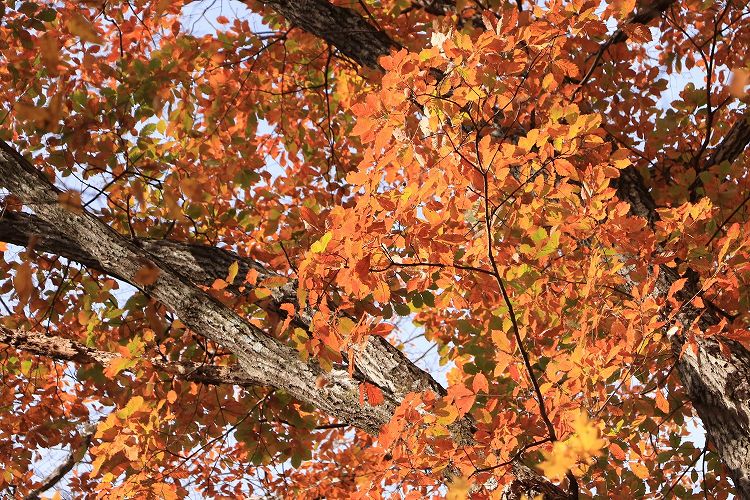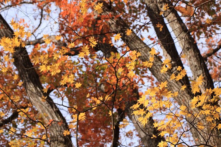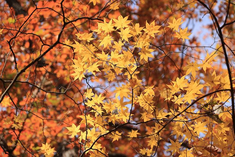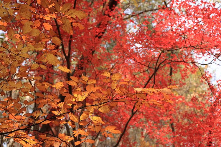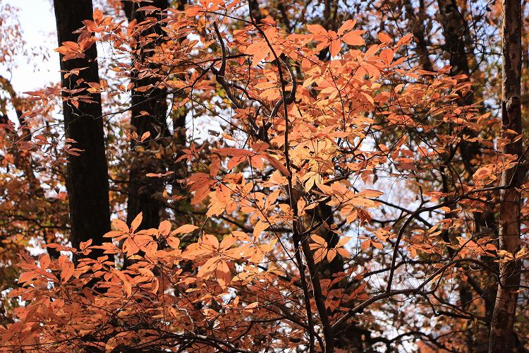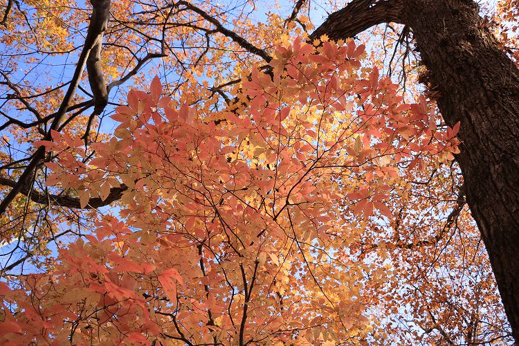 この特徴的な淡い葉はメグスリノキかな。好きな紅葉の1つです