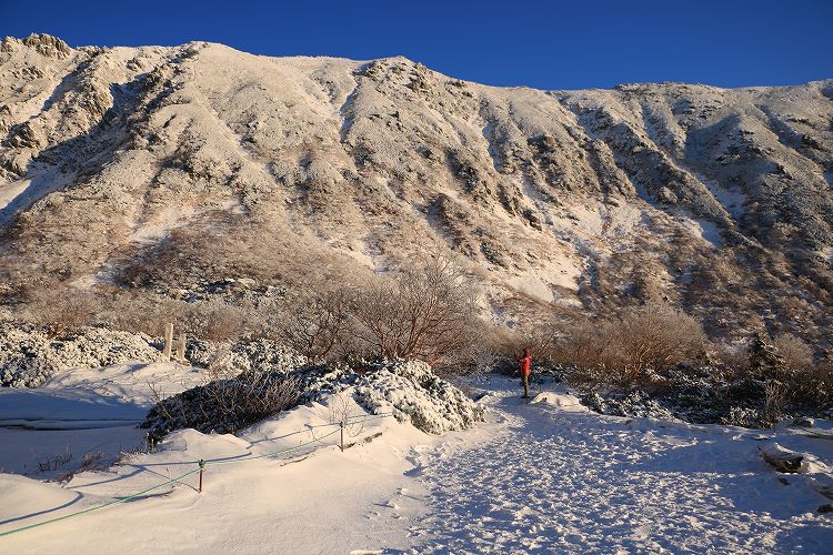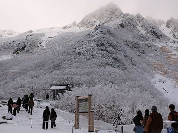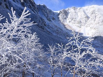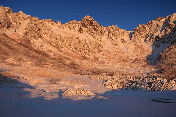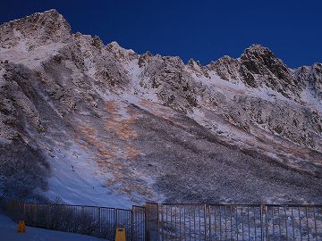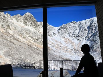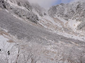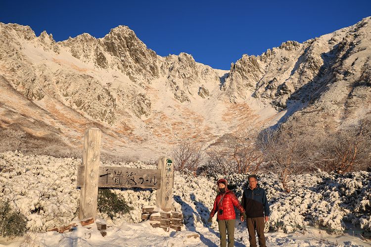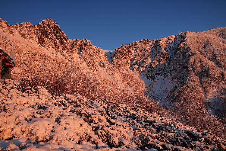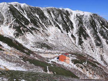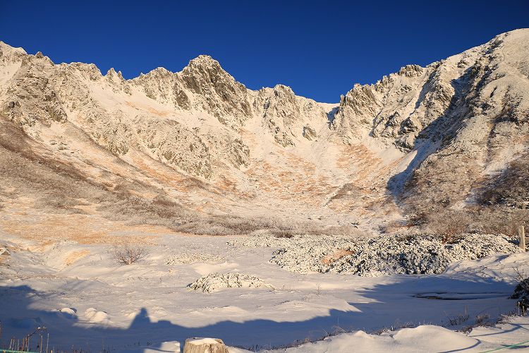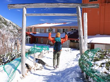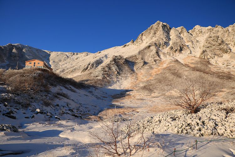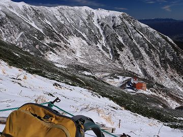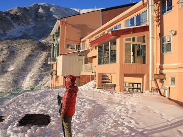 それまで草紅葉だった千畳敷は宿泊前日の吹雪で様相が一変、