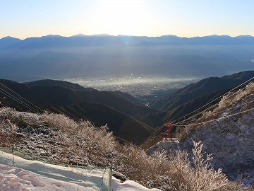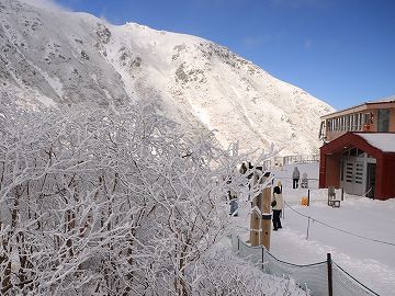 左の建物は ロープウエイ駅 兼 ホテル千畳敷